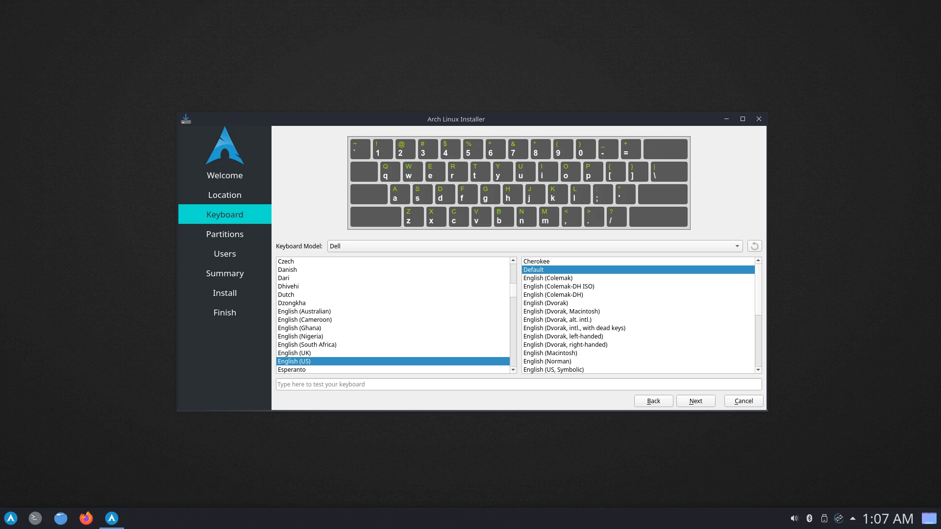 点击 Next,键盘布局这里根据实际选择,比如我是戴尔,一般选默认不会出错
