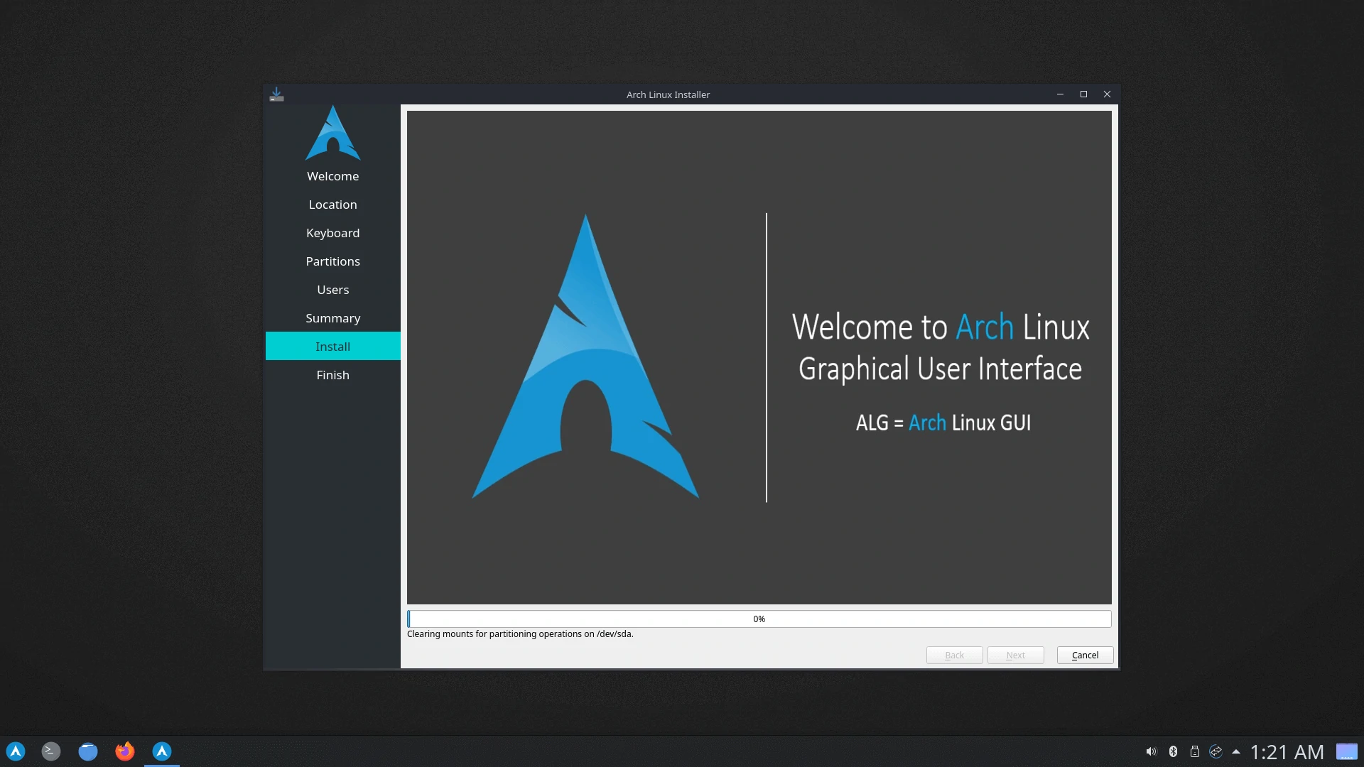 ALG = Arch Linux GUI 提供了图形化安装程序,是继 archinstall 后更便于安装的 Arch Linux 版本(不算新的发行版,只是定制化版 Arch)